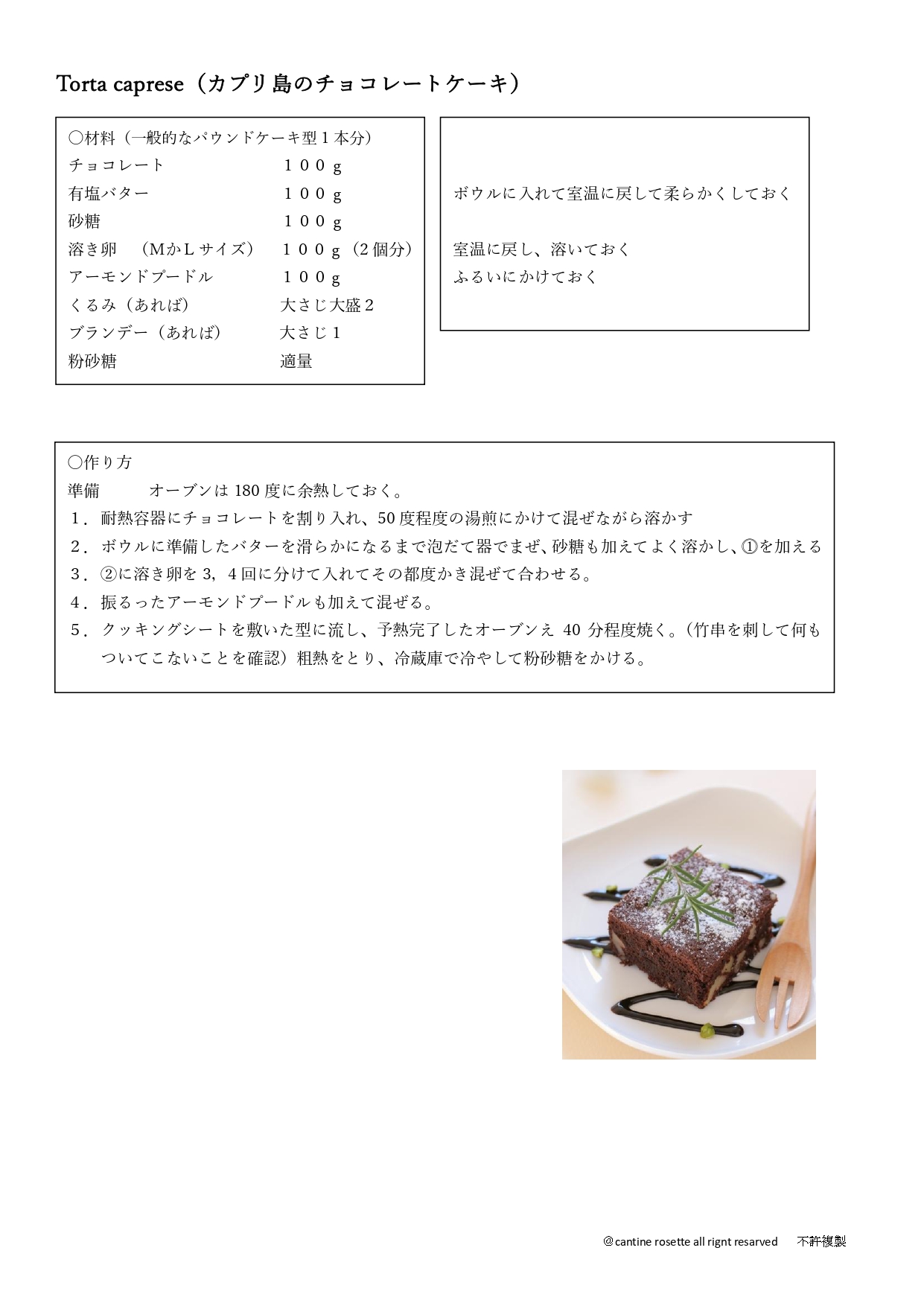 トルタカプレーゼ(カプリ島のチョコレートケーキ)